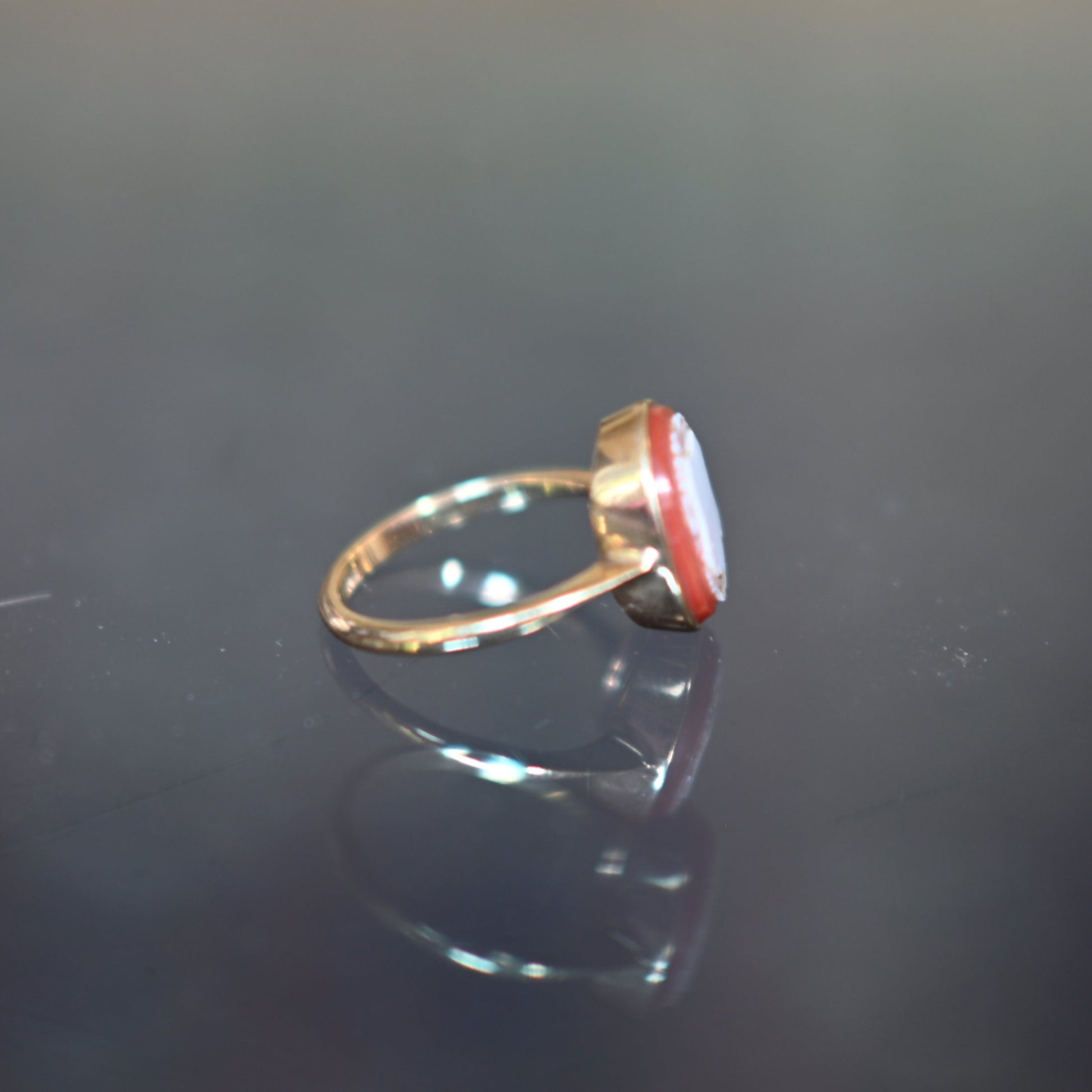 The finest example of Sardonyx is red and white banded which is featured in this ring.